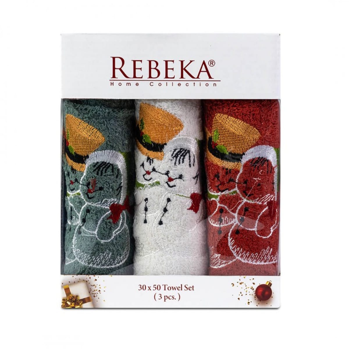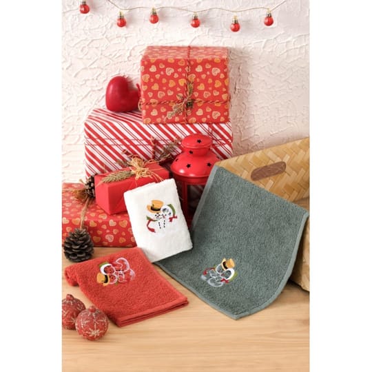 Начало / Продукти / Хавлиени кърпи / 3 броя коледни кърпи с бродерия Снежко в кутия
