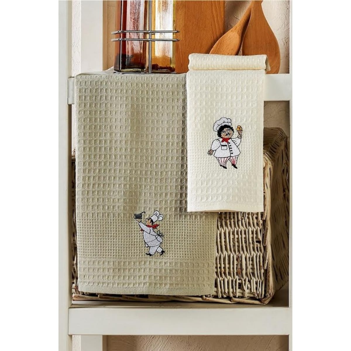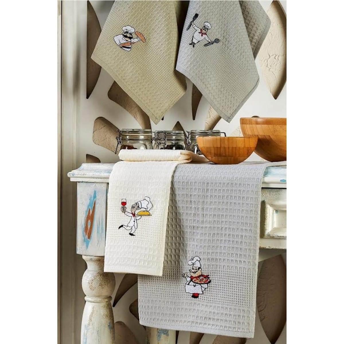 Начало / Продукти / Хавлиени кърпи / 6 броя вафлени кърпи с бродерия "Готвач"