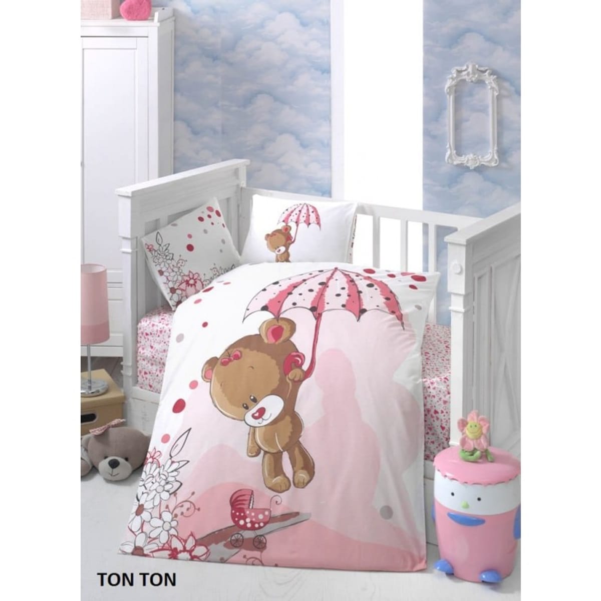 • Комплектът включва: Долен чаршаф 100/150 ; Плик за завивка 100/150 ; Калъфка за възглавница 35/45 2 броя