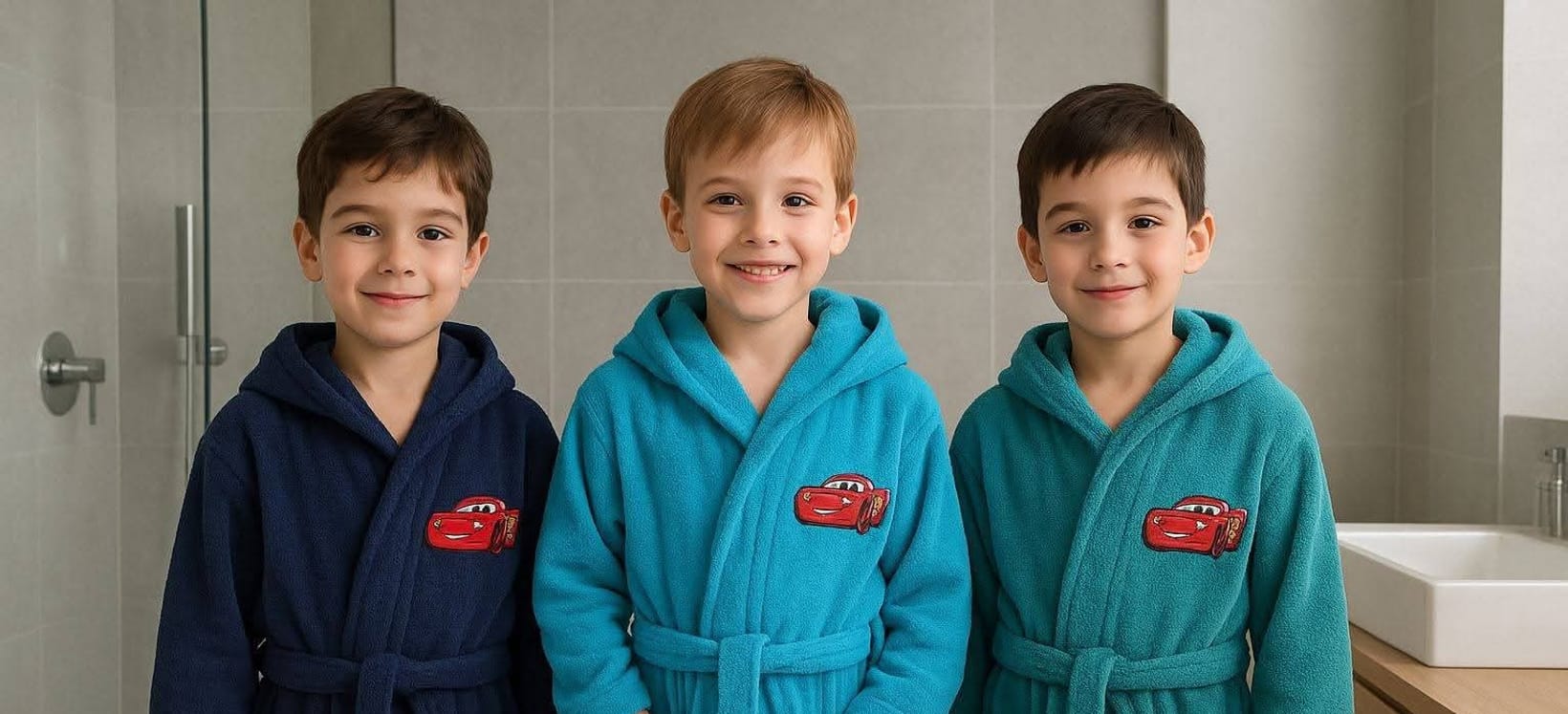 Прекрасни детско юношески халати с бродерия за вече порасналите, от 100% памук, което е сигурност при хавлиените изделия, абсорбира влагата и носи истинско удоволствие след баня. Страхотен детски халат от 100% Памук, много мек и нежен за детската кожа. Материята е супер абсорбираща и успява да се справи бързо с попиването на водата. Освен това, не оставя неприятни власинки след употреба и не се свива след пране при правилна грижа на изделието.Щампата е с бродерия, изключтелно популярен дизайн сред детските хавлиени изделия.