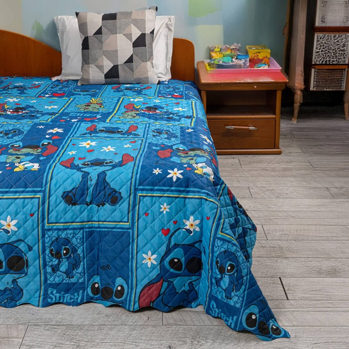 Шалтето за детска стая със Стич е създадено специално за малките почитатели на любимия герой. Изработено от мек и висококачествен микрофибър, то осигурява комфорт и топлина през всички сезони. Материята е лека, дишаща и изключително приятна на допир, което го прави подходящо за ежедневна употреба. Веселият дизайн със Стич внася настроение и цвят в детската стая, създавайки уютна и забавна атмосфера. Шалтето е лесно за поддръжка – пере се в пералня и съхне бързо, без да губи форма и цветове. Не съдържа вредни вещества и е безопасно за детската кожа. Това е практичен и стилен избор за всяка детска стая.