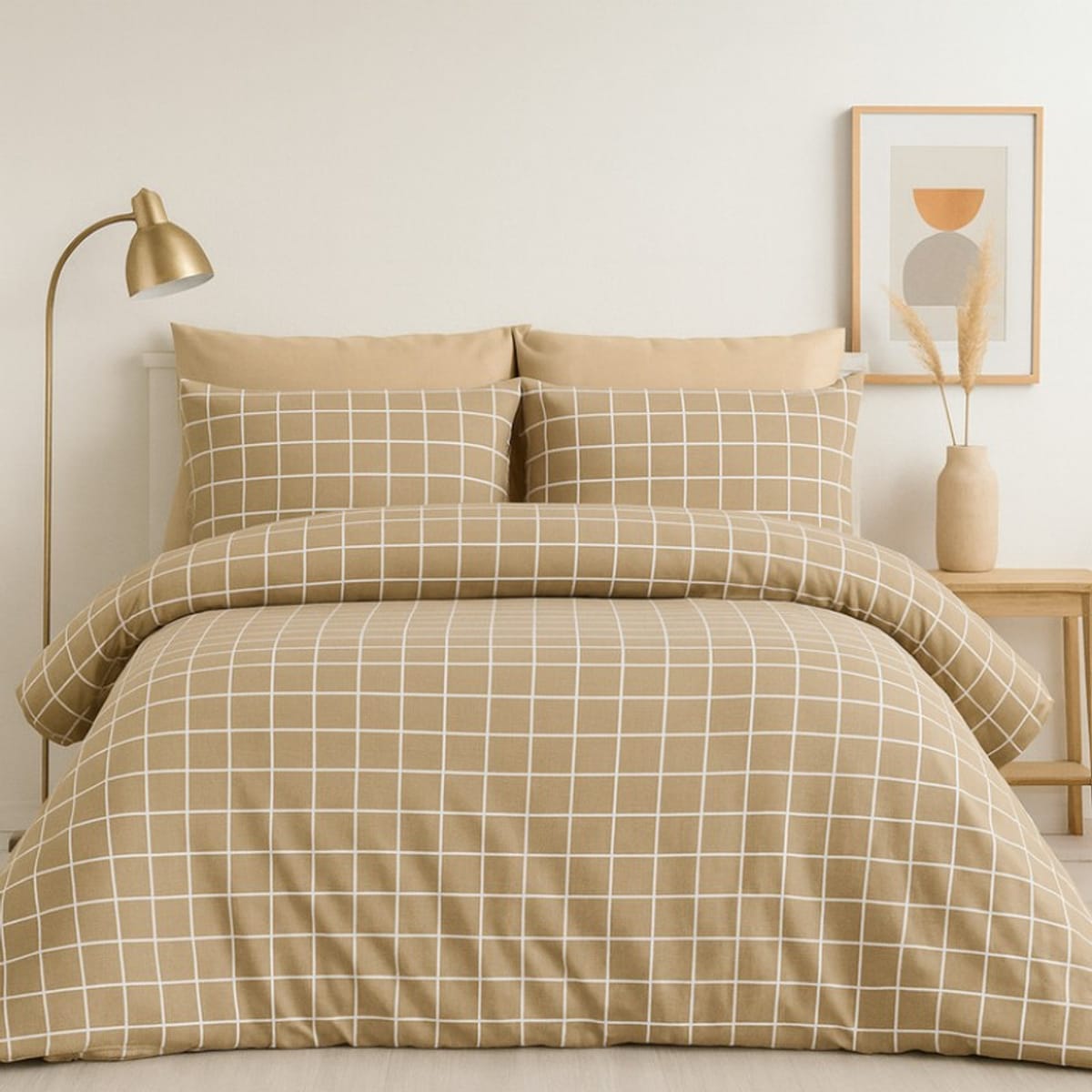 Единично спално бельо в кафяво и бежово на карета, подходящо за допълнение към вашия дом. Създайте уют и хармония в спалнята си с изисканото единично спално бельо в кафяво и бежово на карета. Класическият каре десен в топли тонове придава стил и комфорт, а материята от висококачествено памучно хасе осигурява мекота и дълготрайна издръжливост.
