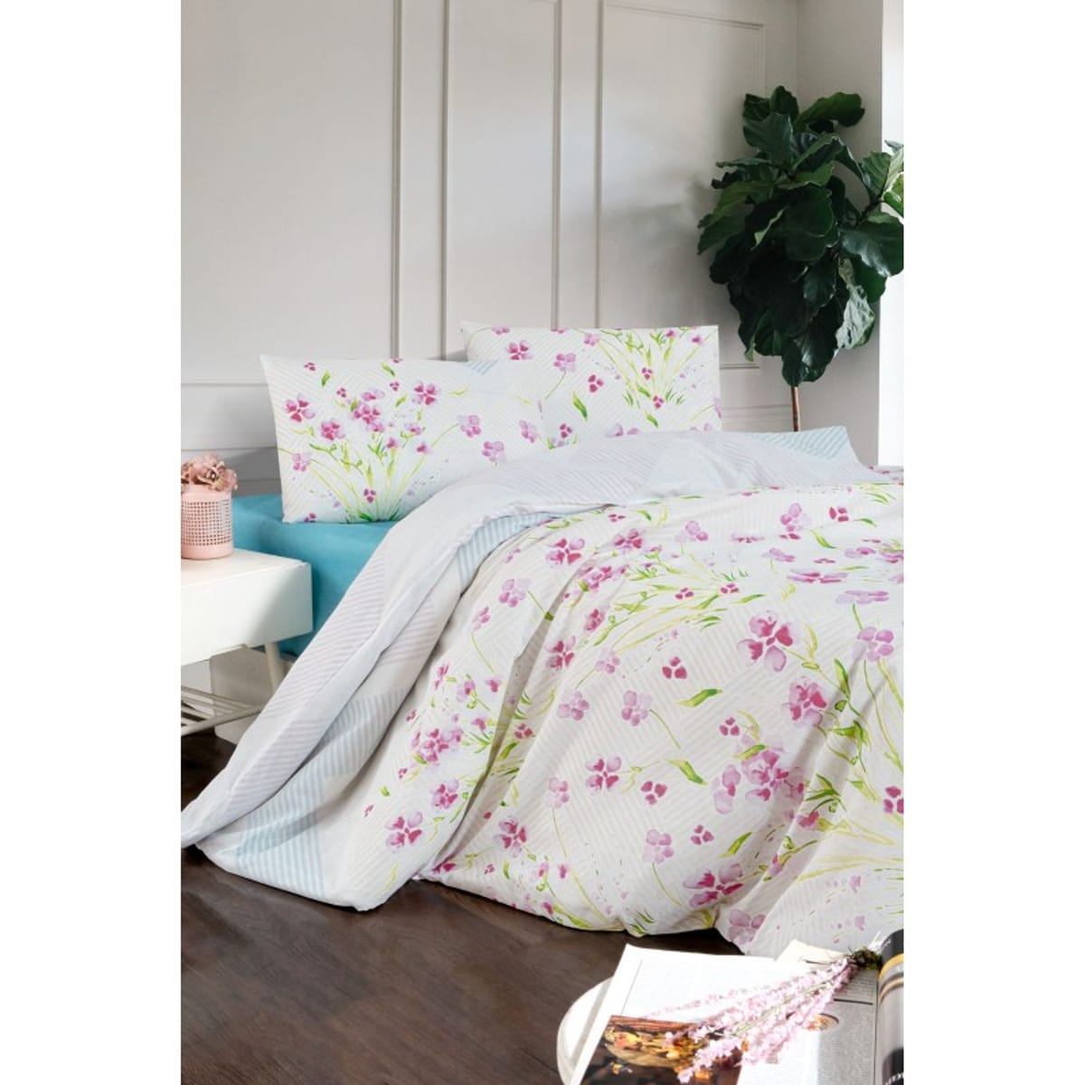 Единично спално бельо памучно хасе Flora