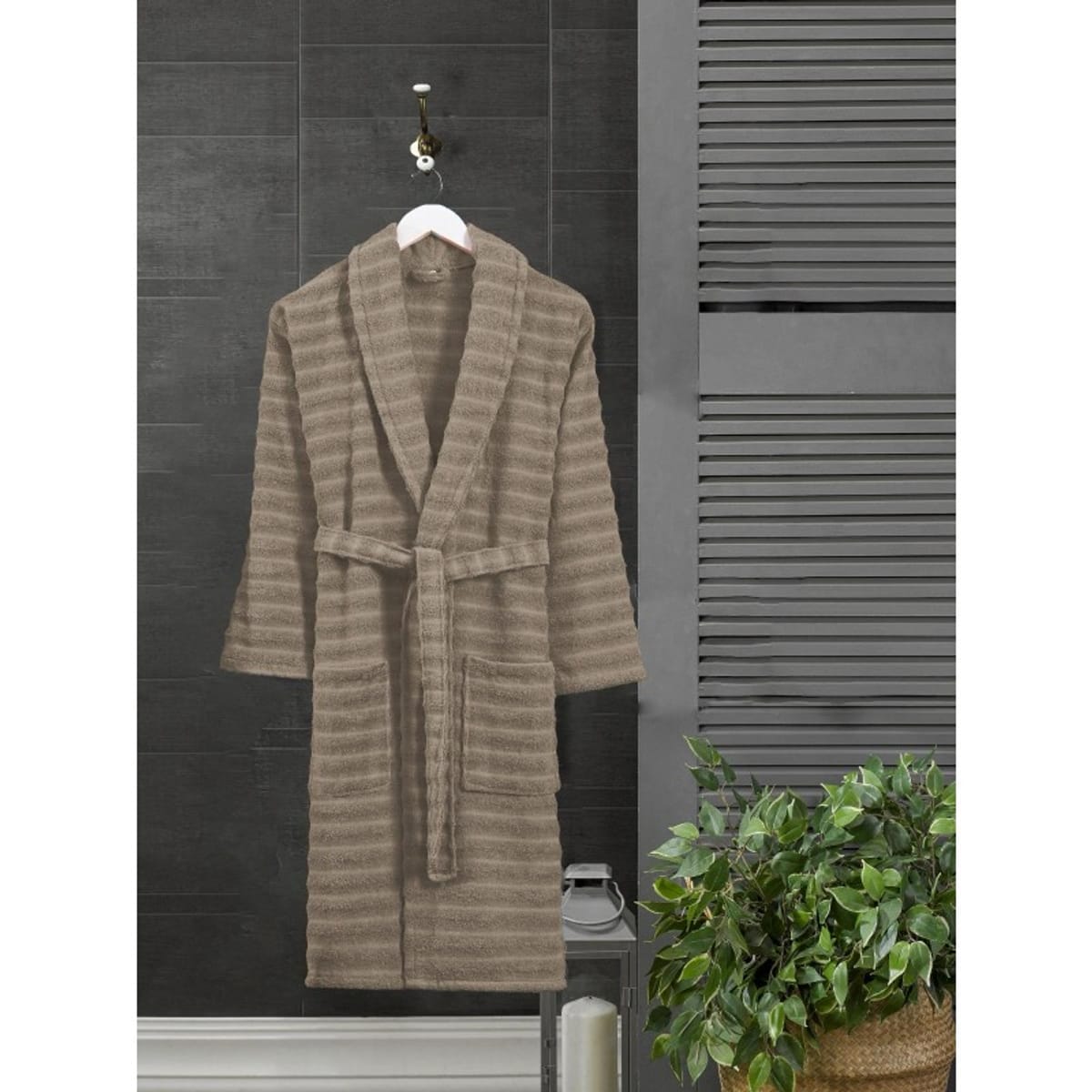 Луксът в банята е все по-близо, хавлиените халати Дога представяват точно това, уникална външност, която е комбинира с материал 100% памук, абсорбираща материя и приказен бежов цвят. Серията Дога съчетава цветовете на земята, променят декора на банята и са истинско удобство за тялото.
