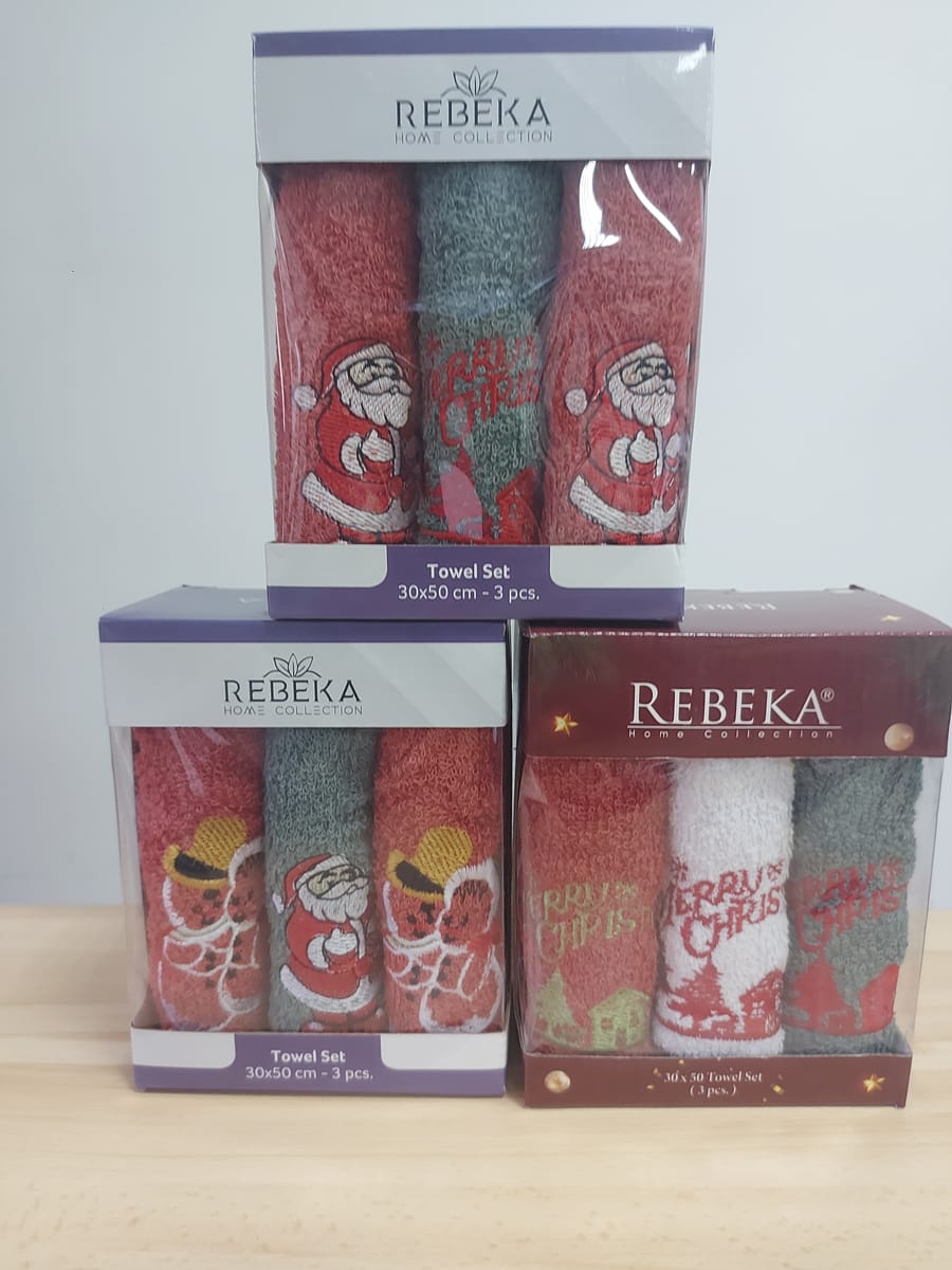 СЕТ ОТ 3 БРОЯ КОЛЕДНИ КЪРПИ В РАЗМЕР 30/50 подходящи послучей наближаващите Коледни празници. 100 % Памук, попиващи и устойчиви на многократно пране.