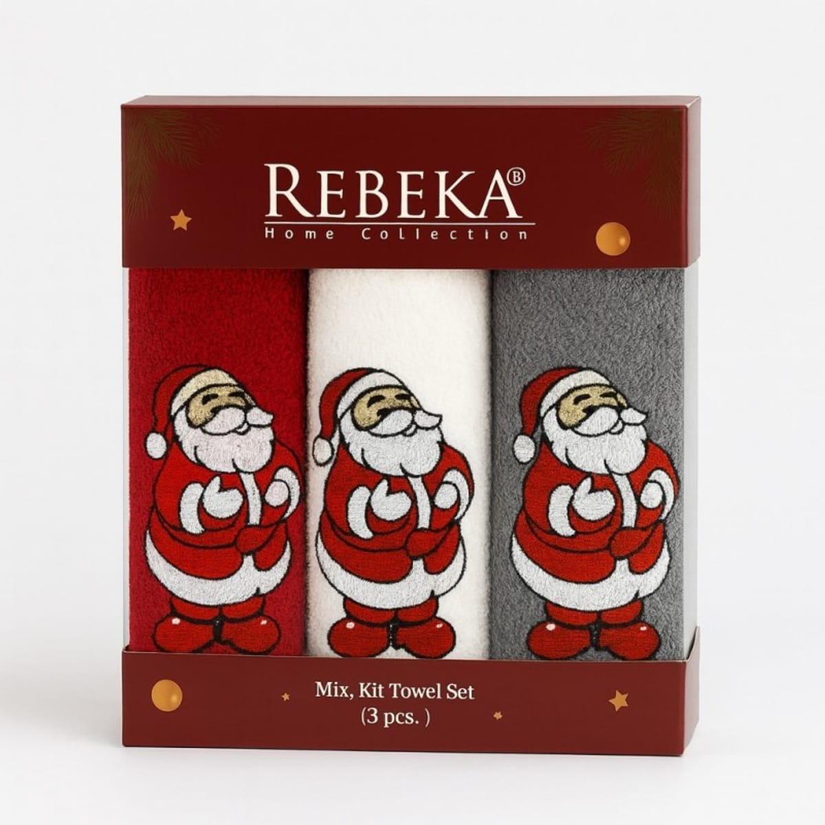 Начало / Продукти / Хавлиени кърпи / Коледни кърпи с бродерия Дядо Коледа в кутия 3 броя