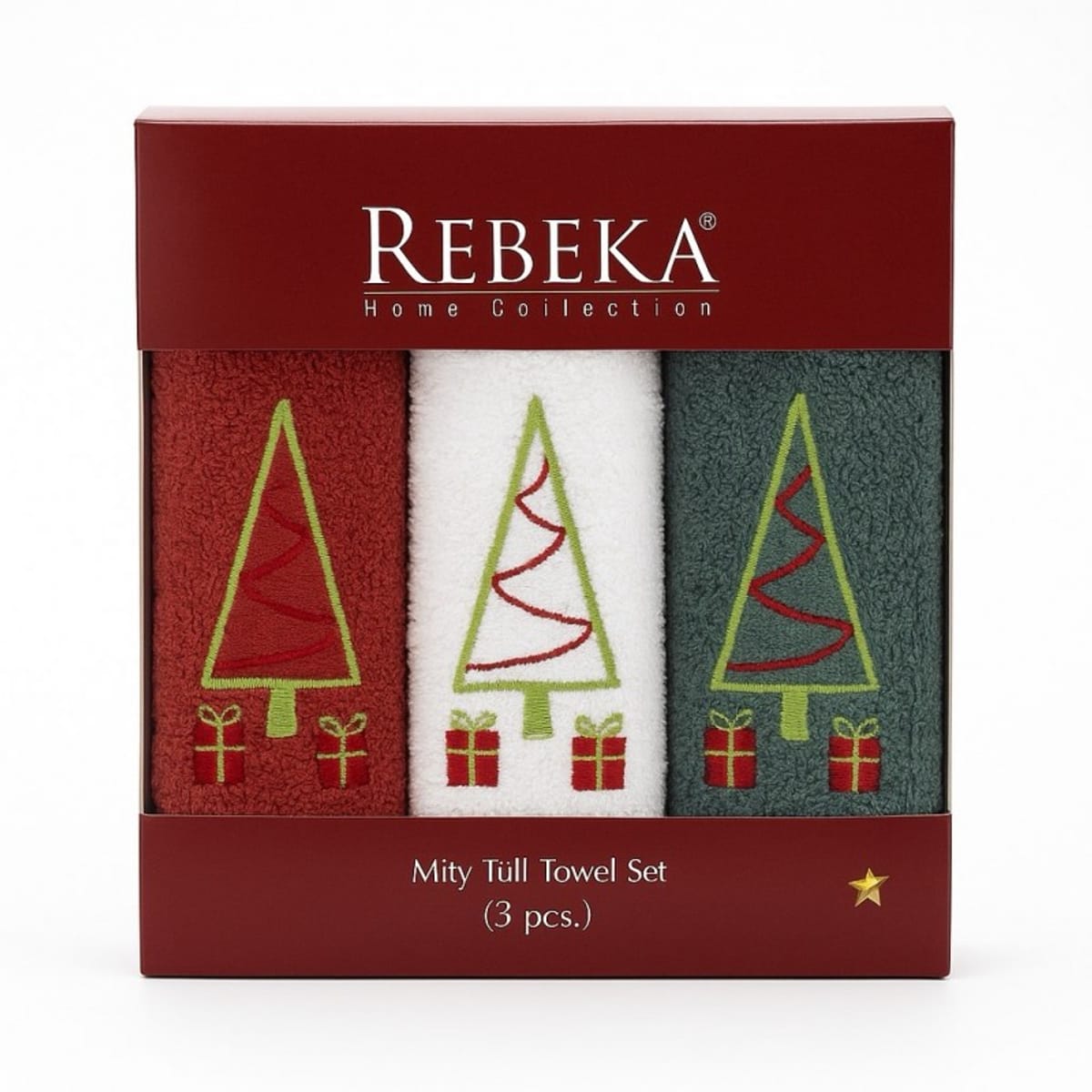 Начало / Продукти / Хавлиени кърпи / Коледни кърпи с бродерия Елхички в кутия 3 броя