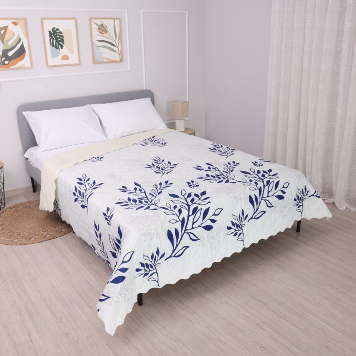 Придайте стил и комфорт на спалнята си с това елегантно двулицево шалте 200/220 см. Комбинацията от бяла основа и фини сини клони придава лекота и изисканост на интериора. Шалтето е изработено от висококачествени материи, които гарантират мекота и дълготрайност. Достатъчно голямо, за да покрие леглото изцяло, то създава завършен и подреден вид. Двулицевата му структура ви позволява да разнообразявате стила на спалнята с минимално усилие. Леко и удобно, то е подходящо за целогодишна употреба, без да утежнява леглото.