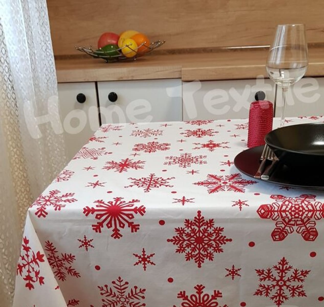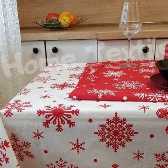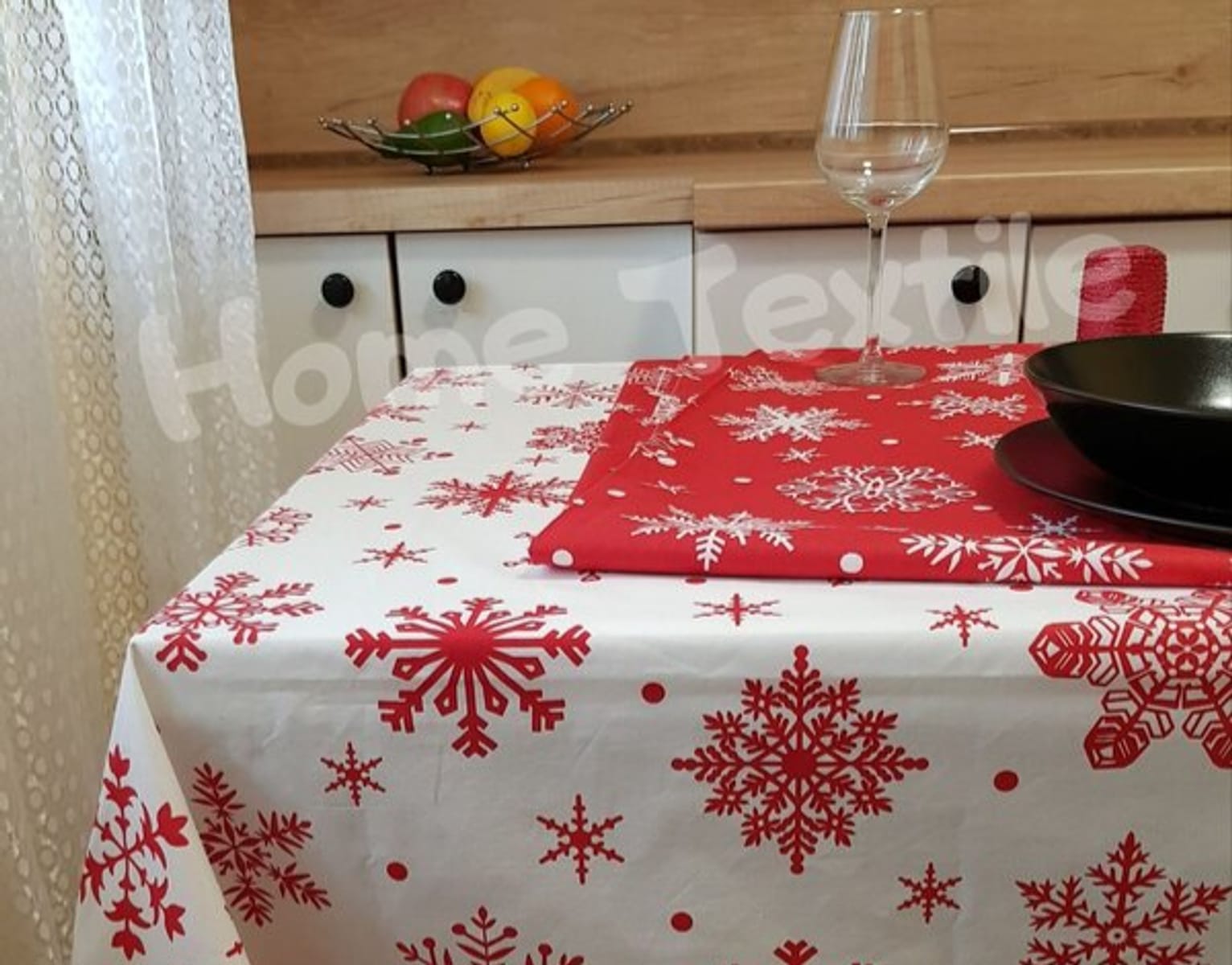 Допълнете украсата на Вашият дом. Създайте едно уникално празнично настроение на Вашата трапеза. Добавете семеен уют и топлина и получете един незабравим празник. С това наше предложение ние ще Ви помогнем в украсата и уюта. Снежно белият цвят, примсен с червени снежинки ще Ви накара да сядате с усмива покрай семейната трапеза. Изживейте го, само сега всичко това е на достъпна цена за всяко едно домакинство.