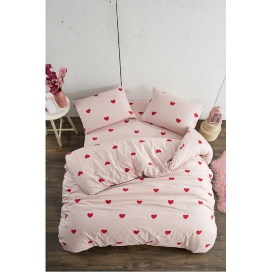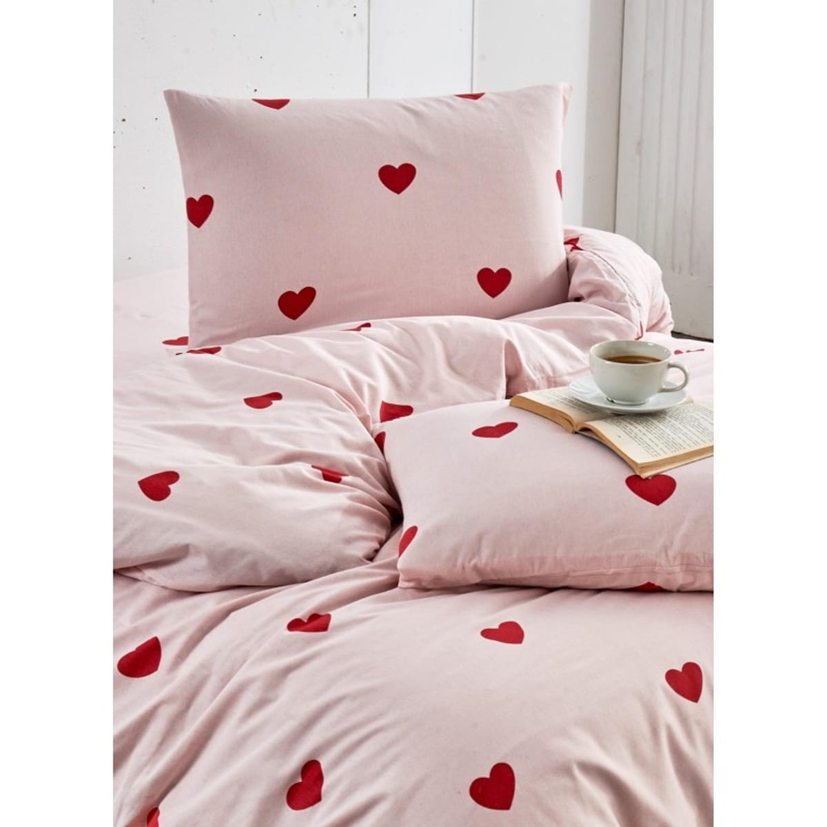 Начало / Продукти / Спални комплекти / Спално бельо фин памук със сърца розово