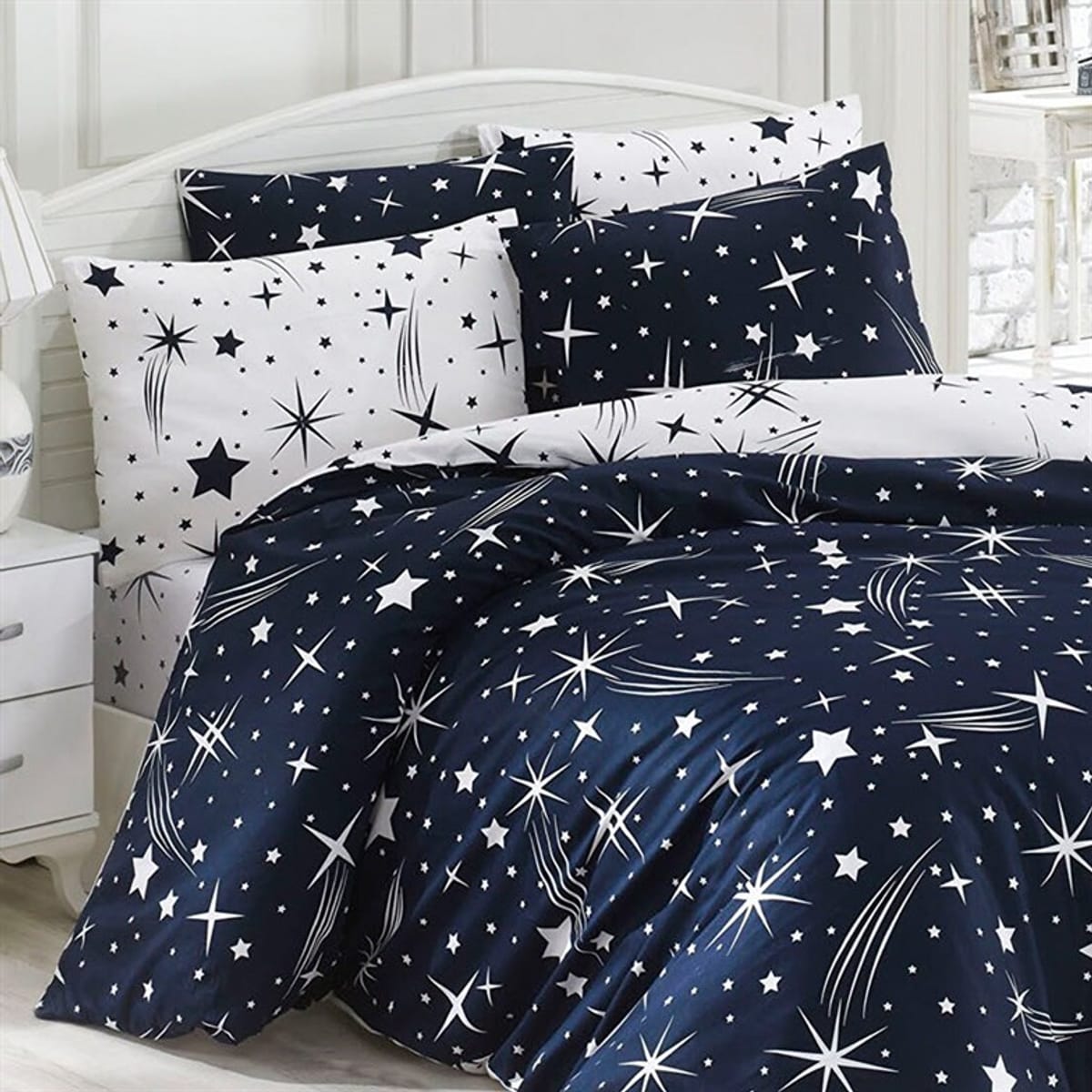 Звездно спално бельо, уникален десен изработен от ранфорс, изделието е ушито много професионално, а десенът е феноменален. Звездите са стилни, цветовете в комплекта, формите. Продуктът е в стандартен размер за спалня. Марката на комплекта е световно известна продуктите се предлагат в цяла Европа като са популярни с качество и сигурност.